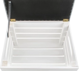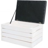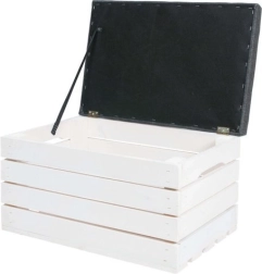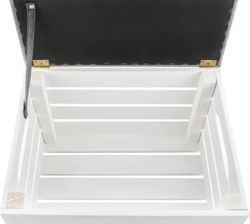 The hinged flip-up lid with a strap provides easy access to a large storage space for blankets, shoes, or toys and keeps your home clutter-free.