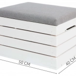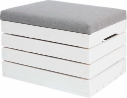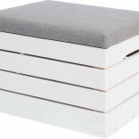 Discover a versatile pouf ottoman with storage that saves space and keeps your home tidy. The flip-up lid with seat lets you quickly access stored items, while the neutral combination of white wood and gray upholstery fits both modern and classic interiors.