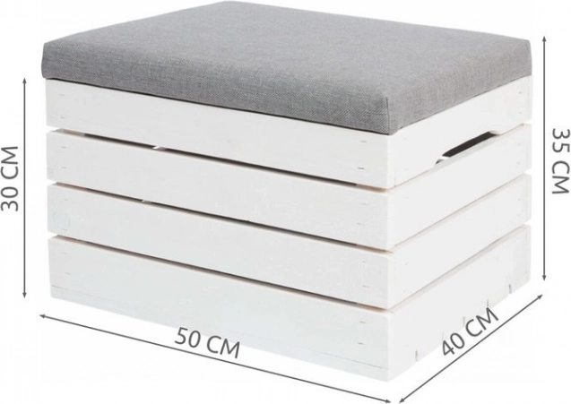 The robust build from dried and planed spruce wood with wide slats (up to 13 cm) ensures stability and long service life. Highly elastic T-25 foam provides comfortable seating, whether you use the pouf as a hallway bench, a footrest by the sofa, or a practical side table on the balcony.