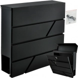Elegant anthracite mailbox made of durable galvanized steel. Offers a large slot for A4 format, a rain cover, lock with 2 keys, and a practical tube for newspapers and flyers. Ideal for fence or wall mounting, with mounting anchors included.