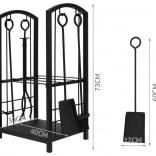 The complete 4-in-1 kit includes a poker for evenly spreading hot wood or coal, tongs for safe log handling, a shovel, and a brush for a clean firebox. The tools have practical hooks for neat hanging on the stand.