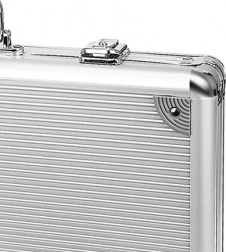 The stylish case protects the entire set. Internal foam and molded compartments keep cards, chips, and dice in place during transport.