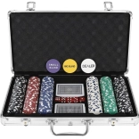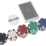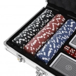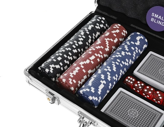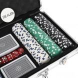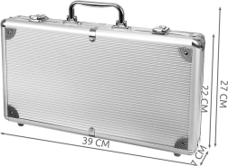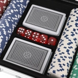 Host your own poker night with a complete set that includes everything you need for Texas Hold'em and other card games. Metal-core chips (10 g) deliver an authentic casino feel—they have satisfying weight, stack beautifully, and are highly durable. Everything is stored in a sturdy aluminum case with foam padding and precisely molded compartments, so the contents stay in place even when traveling.