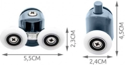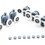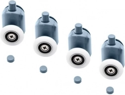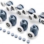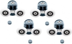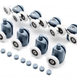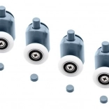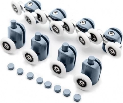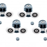 Replace worn or sticking runners and restore smooth, safe opening of your shower doors. The set includes upper double and lower single, flip-out quick-release rollers for easy maintenance and cleaning. The universal ball-bearing design adapts to the guide rail profile and prevents the doors from jumping off the track.