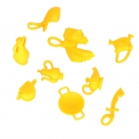 The game includes various items, cards, and an assemblable camel. The objective is to place the assigned items on the camel's saddle so it stays stable. Each card has a designated point value and players earn points for correct placement. The game ends when the camel stands up and the winner is the player with the most points.