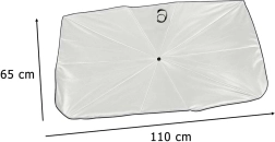 Protect your car from heat and UV radiation. This smart shade unfolds as easily as an umbrella, is placed against the windshield, and its reflective layer deflects sunlight to keep the interior noticeably cooler. Ideal for larger passenger cars thanks to its 65 × 110 cm size.