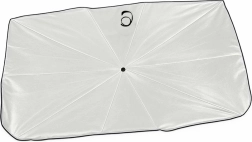 Enjoy a cooler car interior even in the hottest weather with this practical windshield sunshade. Umbrella-style quick deployment, effective UV protection and a reflective surface to reduce heating of the dashboard, steering wheel, and seats. Folds compactly into a case, taking up minimal space.