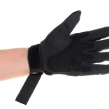 These black tactical gloves are designed for demanding conditions. Layered reinforcements on the palm improve grip confidence and protect the most stressed areas from abrasion or cuts. Hard padding on the back of the hand shields knuckles from impacts, while the adjustable wrist strap ensures a stable and secure fit without uncomfortable shifting.
