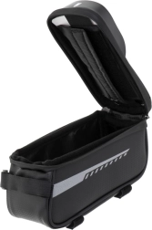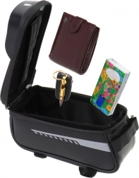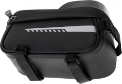 Its compact dimensions won't interfere with your ride. The pocket is zip-closed, ensuring nothing falls out, even during sharp turns. The bag installation is secured with three hook-and-loop fasteners: one on the handlebars and two on the bike frame, ensuring perfect stability during the ride. It fits any bike model regardless of the brand.