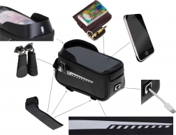 This waterproof bicycle bag is the perfect accessory for every cyclist looking for a functional and durable solution for long rides. It features a special spot for your phone, allowing you to easily use it as navigation or a music player while riding. The holder is designed to keep the phone visible and accessible through the transparent and waterproof window.