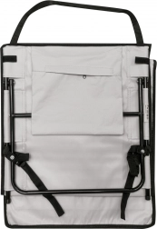 This lounger has a durable metal structure and waterproof material, making it withstand different seasons. It comes with a practical bag attached to the backrest, where you can store your phone or keys. When folded, it doesn’t take much space, and thanks to the handle, carrying it is a breeze.
