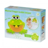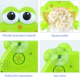 While creating bubbles, the frog plays playful tunes that turn bath time into a mini show.