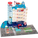 This realistic parking tower turns a kids' room into a bustling city. Thanks to the automatic elevator, you can take the cars all the way to the top floors, then they whiz down spiral ramps. Flashing lights and a cheerful melody from the clock tower add atmosphere—the sound can be switched on and off separately.