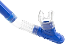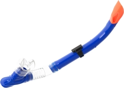 A curved tube with a comfortable mouthpiece and practical length allows natural breathing while swimming at the surface.