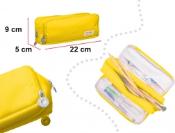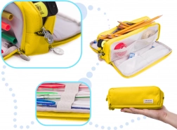 Practical 3-in-1 three-compartment pencil case for school, office, and travel. Thanks to three zippered sections, it keeps all writing tools neatly organized and safely stored. Inner pockets and elastic loops ensure every accessory has its place. Compact dimensions save space in your backpack, while durable polyester guarantees long service life. Multi-purpose use, 3 separate compartments, durable material, and top-notch organization.