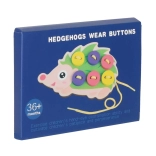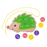 This lacing hedgehog is an ideal aid for first steps in threading and “sewing.” Children thread the cord through the holes and attach colorful buttons to the hedgehog’s “spines.” Bright, vivid colors naturally invite play and teach color and shape recognition.