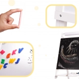 We offer you a great toy that combines fun with learning. The double-sided board helps develop skills in writing, counting, and learning letters. Thanks to its sturdy wooden construction, the board is stable and easy to use for every activity.