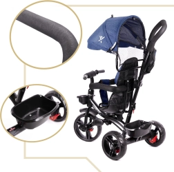 For maximum control, there’s a 360° rotating seat that allows both parent-facing and forward-facing rides. The freewheel lets the parent take over the drive with a single switch. Tubeless wheels provide the comfort of inflatable ones without pressure checks or puncture worries. It also includes a three-position foldable canopy with mesh, a removable push bar with foam cover, and practical storage add-ons.