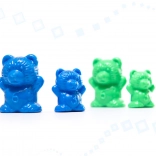 - 60 small bears (6 colors), 30 large bears (6 colors), 6 silicone cups, 3 wooden dice, 2 pairs of tweezers, 15 double-sided task cards