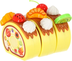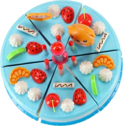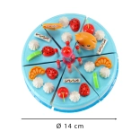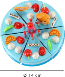Six cake slices connected by hook-and-loop can be easily "cut" with the plastic knife and reattached. Freely mix-and-match decorations—fruit, candles, a teddy bear, or cookies—invite endless creative play. Thanks to the compact 14 cm diameter, the cake is easy to hold even for the youngest.