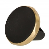 Elegant magnetic car mount in a black-and-gold finish enables quick, firm attachment of your phone to the air-vent grille. Strong neodymium magnets hold the phone securely even on rough surfaces, while not affecting device functions and remaining safe for your phone.