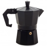 Discover the pleasure of home-prepared espresso with our aluminum moka pot. Its shiny black design not only looks great in any kitchen but also guarantees robustness and durability. With a capacity of 150 ml, it is ideal for making three cups of coffee quickly and easily.