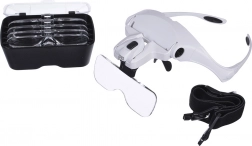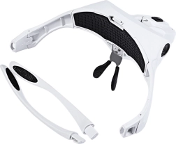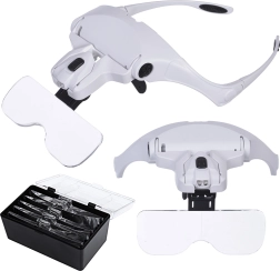 Professional head-mounted magnifier with 5 interchangeable lenses (1–3.5×) and 2 powerful LED lights for perfect illumination of details. Ideal for jewelers, watchmakers, numismatists and service technicians. Offers an adjustable angle, comfortable wear, and a bright, readable image for work and hobbies.