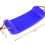 The wide plastic seat with fine ribbing is stable, comfortable, and pleasant to sit on even during longer swinging.