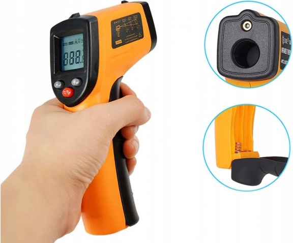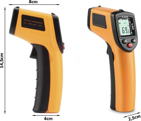 The infrared thermometer allows precise temperature measurement in hard-to-reach places, thanks to the laser pointer which determines the exact location of measurement. It is highly versatile, with uses in the automotive, engineering, construction, refrigeration, gastronomy, and food industries.