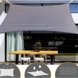 A practical rectangular shade sail measuring 3 × 2 m provides reliable shade and protection from both rain and sun in the garden, on the terrace, or while camping. It is made of durable 180 g polyester, has reinforced edges and corners, metal eyelets, and mounting cords included in the package. Thanks to its water-repellent finish, wind resistance, and UV protection, it is ideal for outdoor use, easy to install, and quick-drying. Waterproofing, UV protection, durable 180 g material, easy installation, and versatile use.