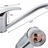 The movable spout, 22 cm long, ensures easy maneuvering of water, valuable during dishwashing or filling larger pots. Additionally, the faucet features easy installation directly onto the sink, ensuring stability during use.