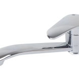 This chrome lever faucet brings a touch of elegance and style to your kitchen.