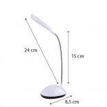The LED desk lamp is equipped with 4 powerful LEDs, providing intense light ideal for reading or work. This product is great as an accessory for reducing eye strain from computer screens. With its white, smooth finish, it is easy to clean.