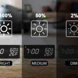 The display dims or turns off after a period of inactivity and wakes up with a clap. Great for undisturbed sleep and lower power consumption.