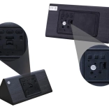 Choose from 3 brightness levels (100%, 50%, 2%), 12/24h mode, and up to 3 independent alarms with activation indicator. The device can be powered by a USB cable (included) or 4× AAA batteries (not included). The minimalist wedge shape and clean lines enhance a modern interior look.