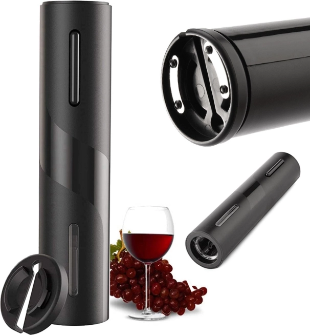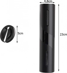 A stylish electric wine opener with corkscrew opens a bottle in 5–7 seconds with a single button press. It offers easy use, quiet operation, and an ergonomic, non-slip grip. Suitable for stoppers with a diameter of 20–24 mm and powered by 4× AA batteries. A great gift idea, includes a foil cutter.