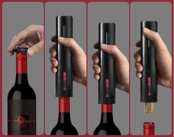 A stylish electric wine opener with a built-in rechargeable battery saves time and effort – it opens a bottle in 5–7 seconds. Easy one-button operation, quiet performance, ergonomic non-slip handle, and LED lighting. The package includes a foil cutter and a USB cable for convenient charging.
