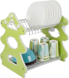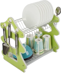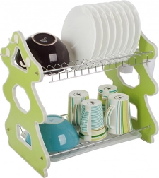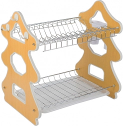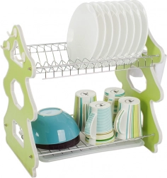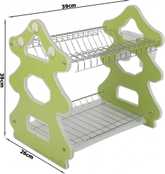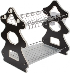 A practical two-level dish rack saves counter space and keeps your kitchen perfectly organized. It offers a top tier for plates and a bottom tier for cups and bowls, a side cutlery holder, and hooks for accessories. Thanks to the drip tray, your countertop stays dry and clean. Made of durable metal and plastic, with a stable construction and easy maintenance.