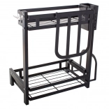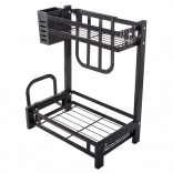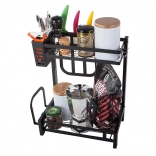 This two-tier kitchen organizer is made of high-quality metal and offers moisture resistance and stability for heavier items.