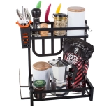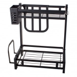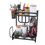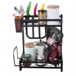 The organizer comes with 4 hooks for hanging towels and kitchen utensils such as ladles and mallets. The design ensures functionality as well as a decorative touch to your kitchen.