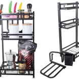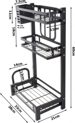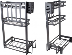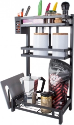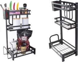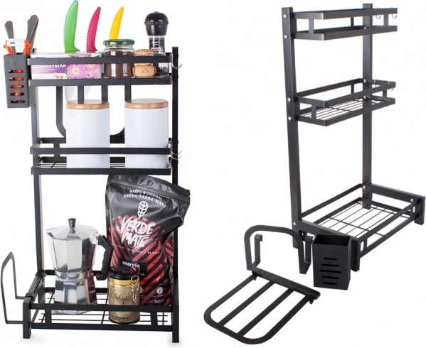 The metal three-tier kitchen organizer is an essential tool for efficient kitchen arrangement. Made from high-quality powder-coated metal, the product is resistant to damage and moisture. Its stable construction allows you to place even heavier items on the organizer.