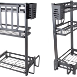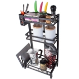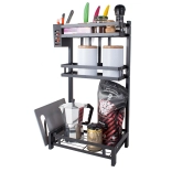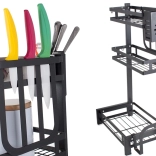 The product includes a hanging cutlery organizer, a shelf for cutting boards, and a kitchen knife organizer.