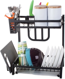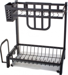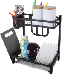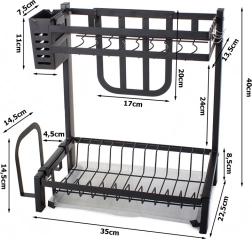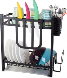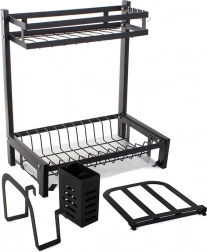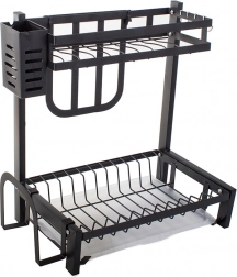 Elegant and practical two-tier dish rack made of black metal that efficiently organizes your kitchen and provides ample space for drying dishes.