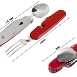 - Four tools in one - fork, spoon, knife, and bottle opener