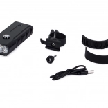 Built-in batteries allow charging via USB port, which is protected with a rubber cover to ensure safety and protection against moisture. The light can be easily attached to almost any bike frame and also serves as a small flashlight.