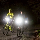 Bicycle light with powerbank function allows mobile device charging during the ride.