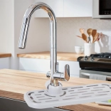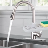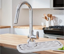 The organizer is designed to easily adapt to different types of faucets and sinks.