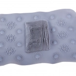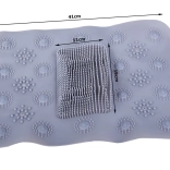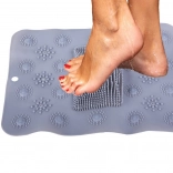The massage mat for the shower and bathtub is ideal for daily hygiene and relaxation. Dense silicone/vinyl nodules gently remove dead skin, clean hard-to-reach areas between the toes, and pleasantly massage the feet. Non-slip suction cups across the entire surface ensure stability and safety even on wet surfaces.