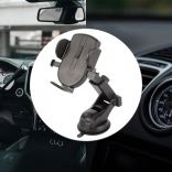 The car phone holder is designed to provide safe and comfortable use of your mobile device while driving. It can be simply mounted on the vehicle's windshield or dashboard, and thanks to the adjustable arm system, the holder is suitable for most phones and GPS devices.