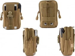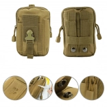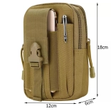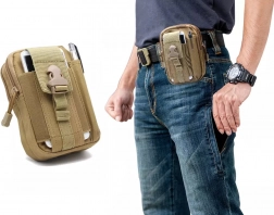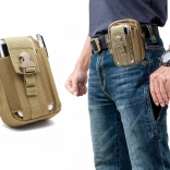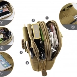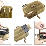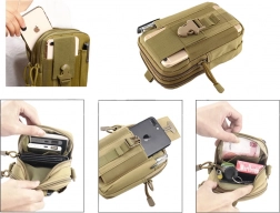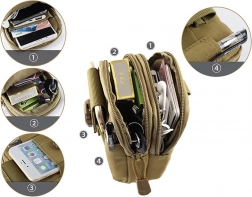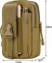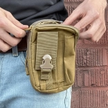 A compact tactical belt pouch with a MOLLE system, ideal for hiking, camping, and everyday carry. It offers 2 main zippered compartments, multiple pockets for clear organization, and a front phone holder with an adjustable strap. Durable, waterproof material and reinforced stitching protect your gear, while the padded interior absorbs impacts. Can be attached to a belt, backpack, or carabiner.